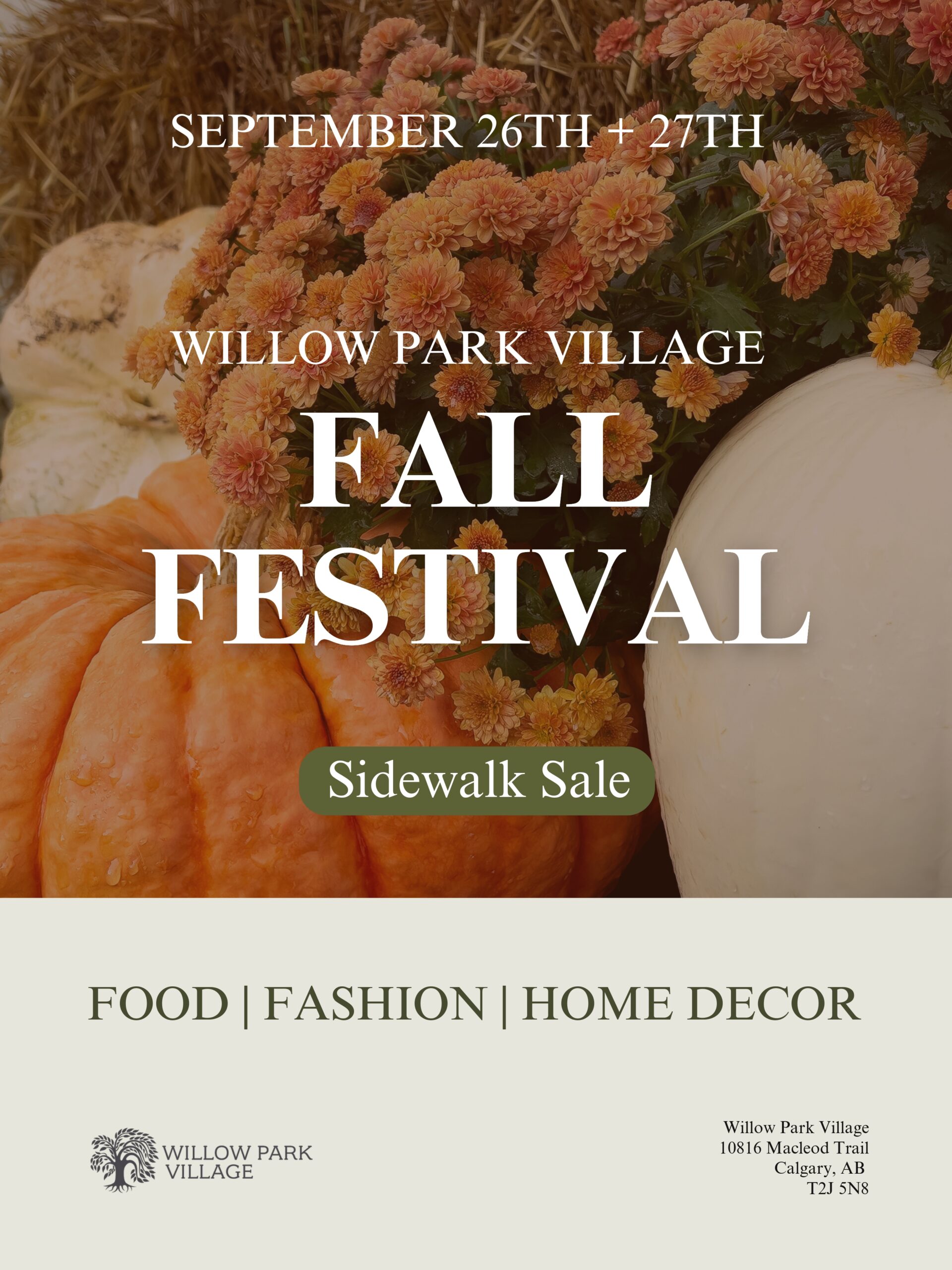 Get ready for some autumn fun! You and your family are invited to our first annual Willow Park Village Fall Fest on September 26 and 27.